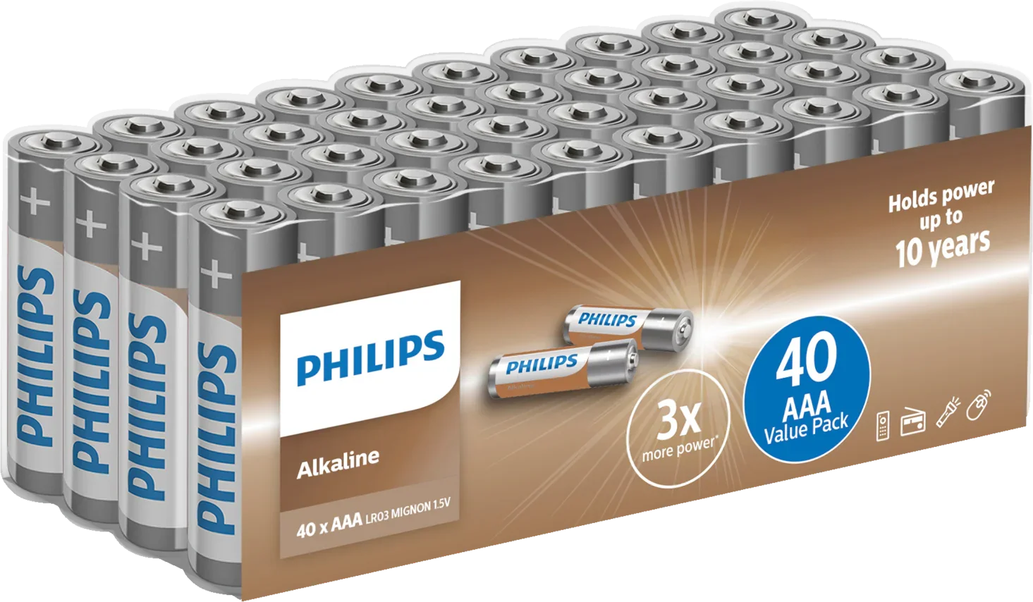 Sørg for, at du altid har strøm ved hånden med Philips AAA batterier i storpak. En driftssikker og økonomisk løsning til både hjem og erhverv.