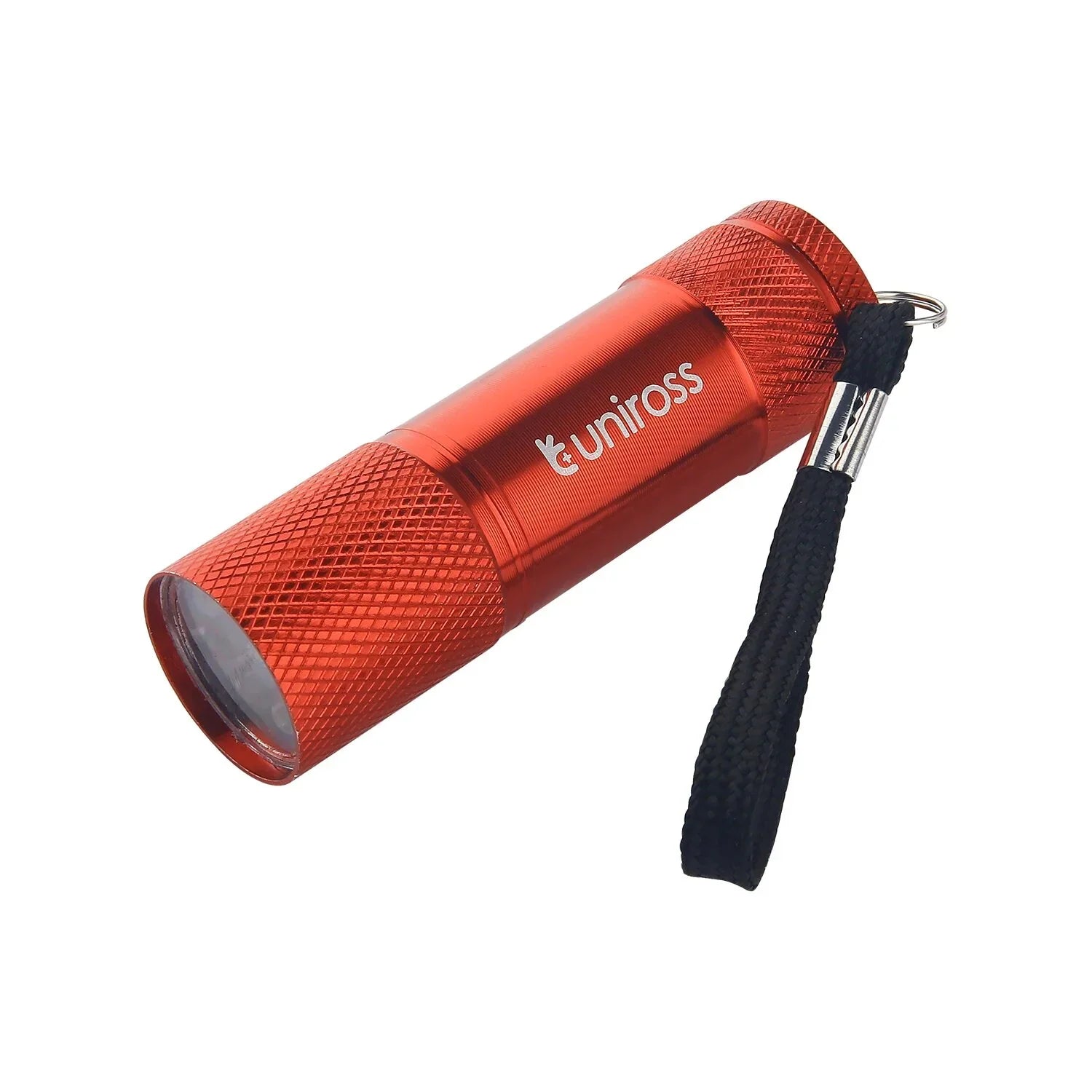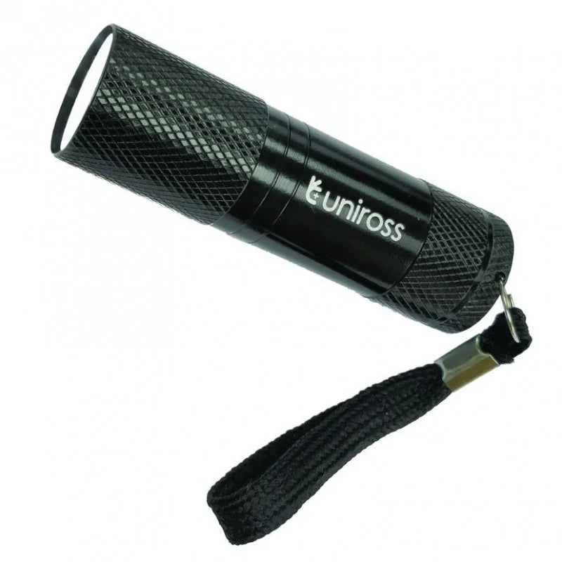 Uniross 9 LED aluminiumslommelygte er en lille, robust og driftssikker lommelygte, der er oplagt til nødsituationer, camping, værktøjskassen eller bilen. Med sin stærke aluminiumsopbygning og 9 LED-dioder giver den et klart lys på op til 30 lumen med en rækkevidde på ca. 20 meter.